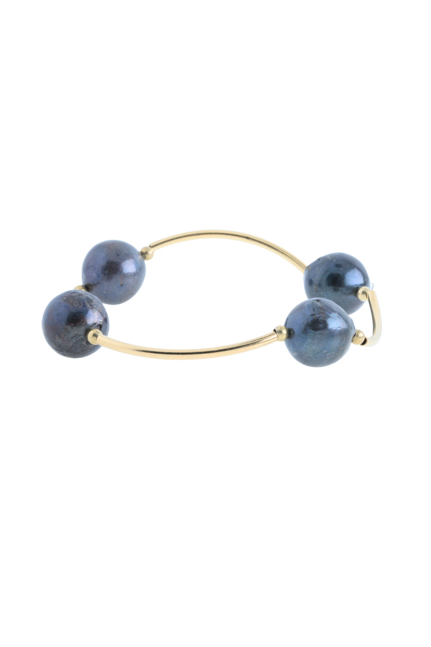 Deze armband combineert tijdloze elegantie met een natuurlijk en organisch karakter. De zwarte zoetwaterparel is organisch rond en meet 12 mm, waardoor elk sieraad uniek is. Het warme geelgoudaccent van de 10 micron vergulde zilveren afwerking geeft de armband een luxe uitstraling.