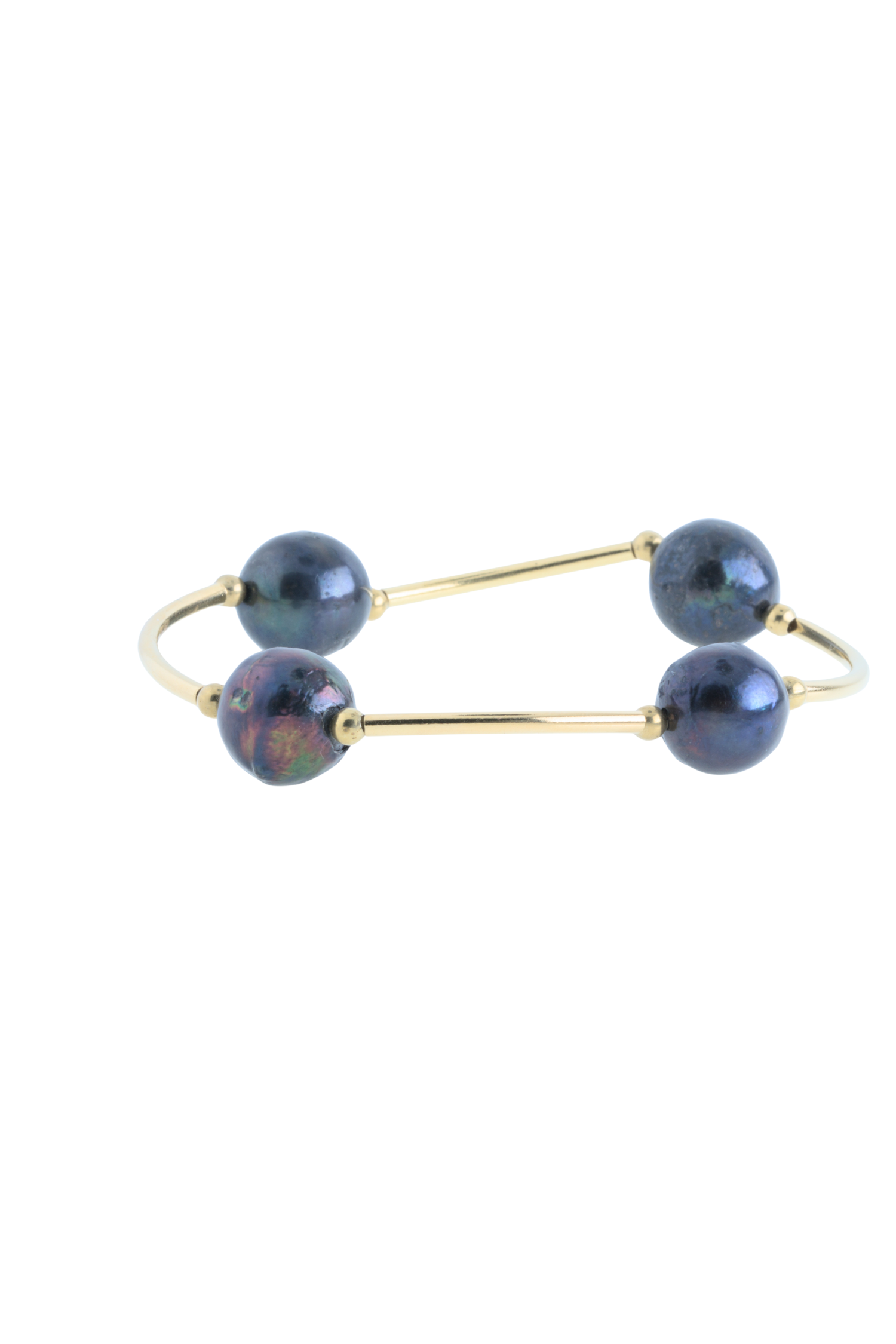 Deze armband combineert tijdloze elegantie met een natuurlijk en organisch karakter. De zwarte zoetwaterparel is organisch rond en meet 12 mm, waardoor elk sieraad uniek is. Het warme geelgoudaccent van de 10 micron vergulde zilveren afwerking geeft de armband een luxe uitstraling.